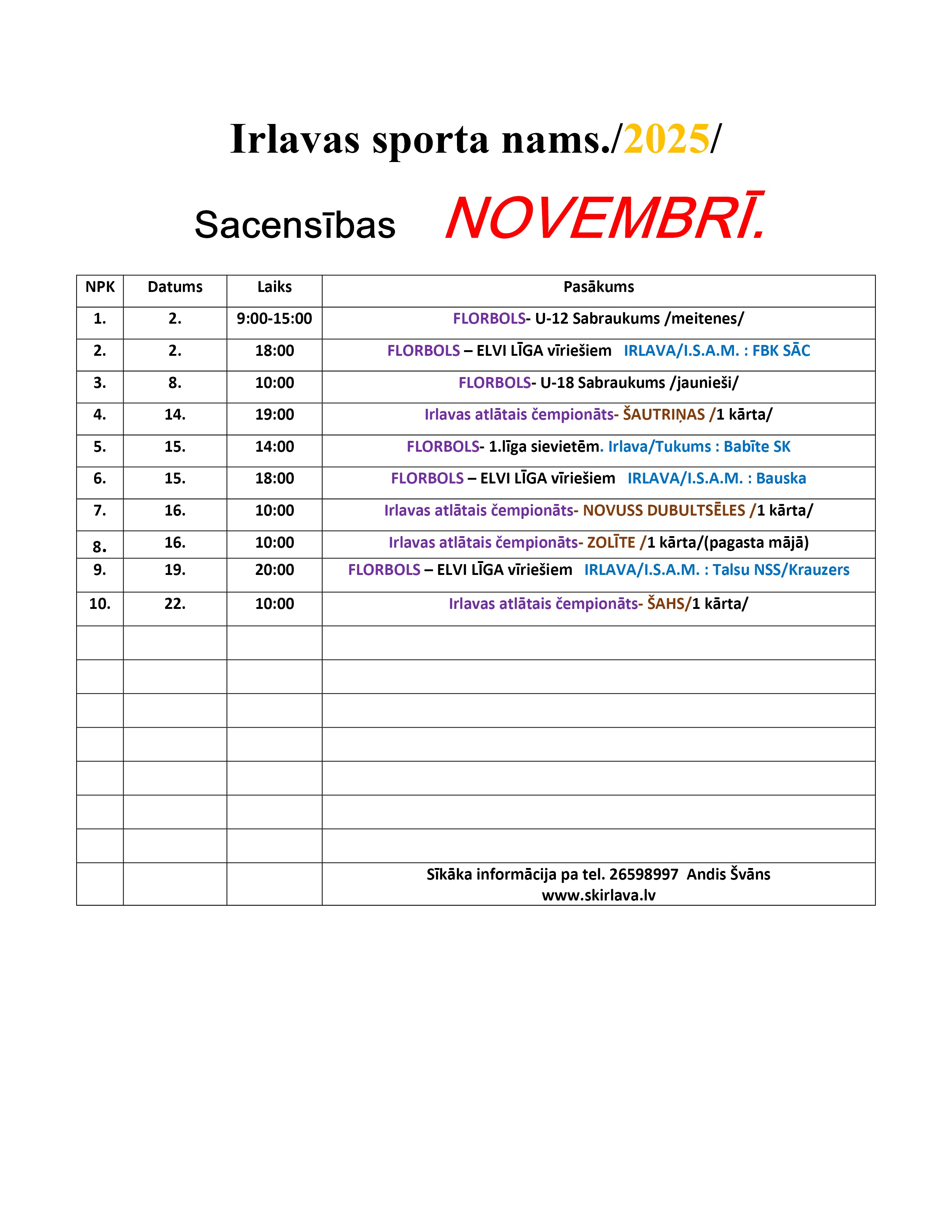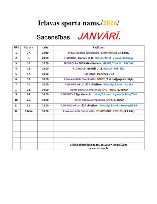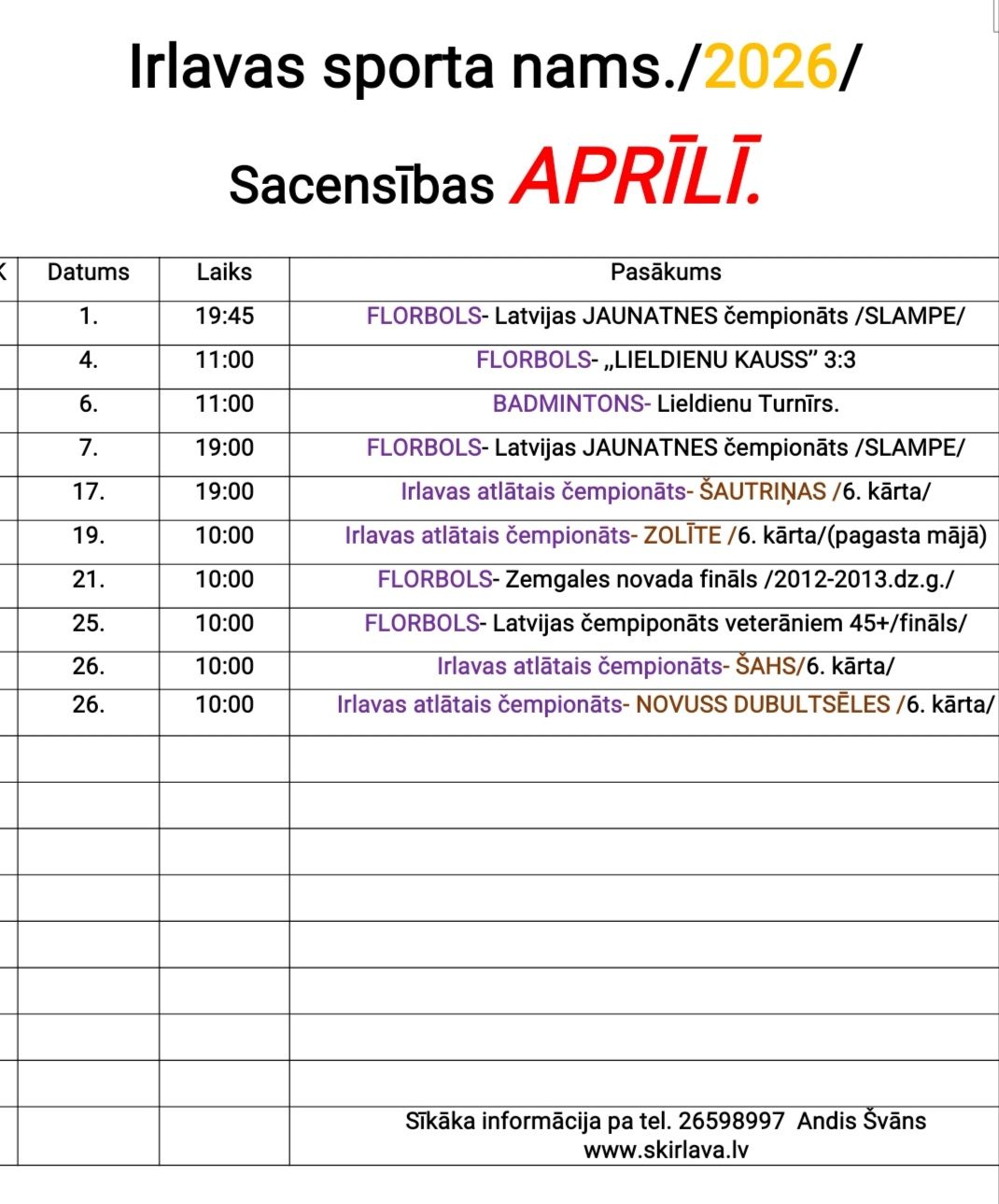 Par iespējām atpūsties Irlavas sporta kompleksā zvanīt pa tel.26598997